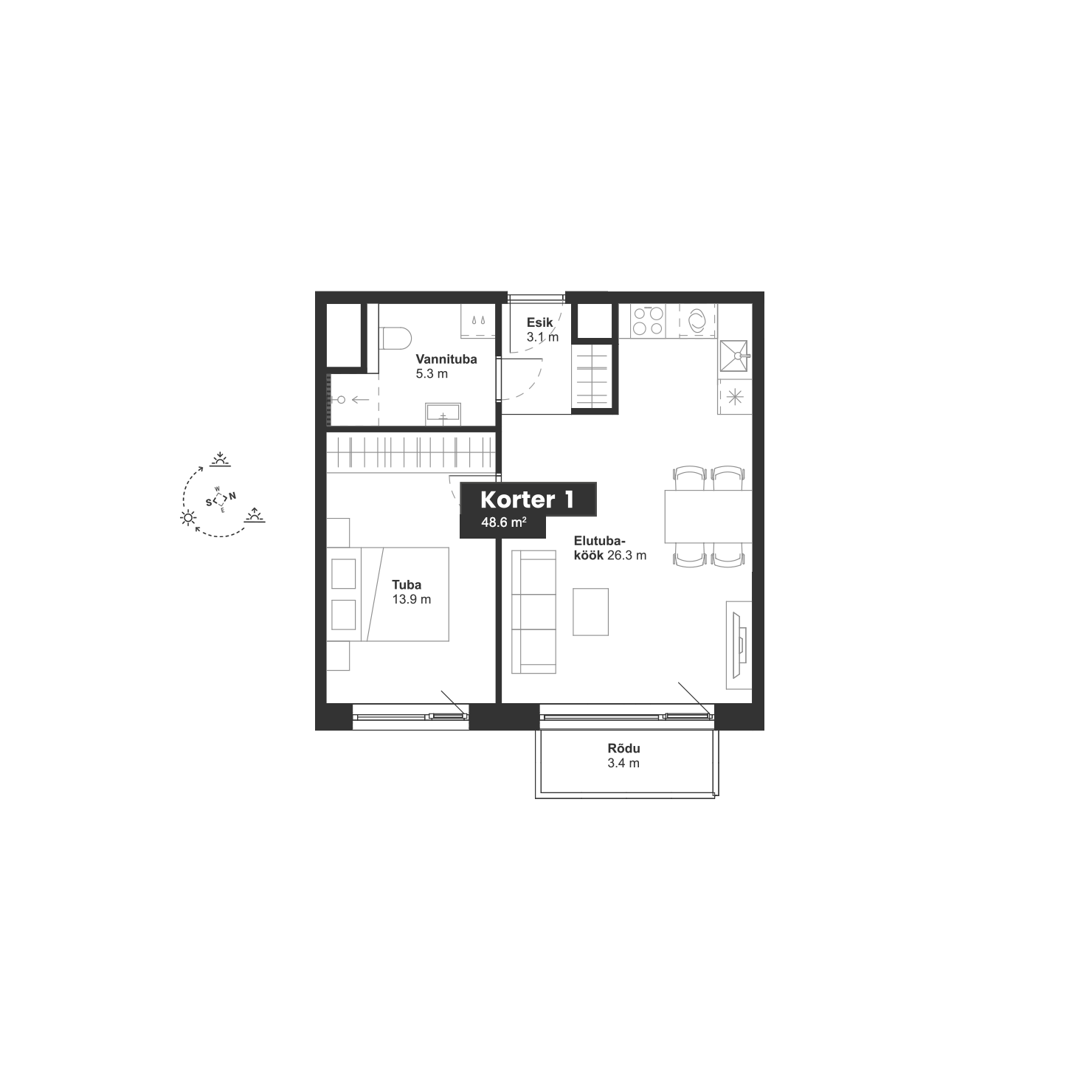 2 korrus 2 tuba 48.6 m2 Rõdu 3.4 m2