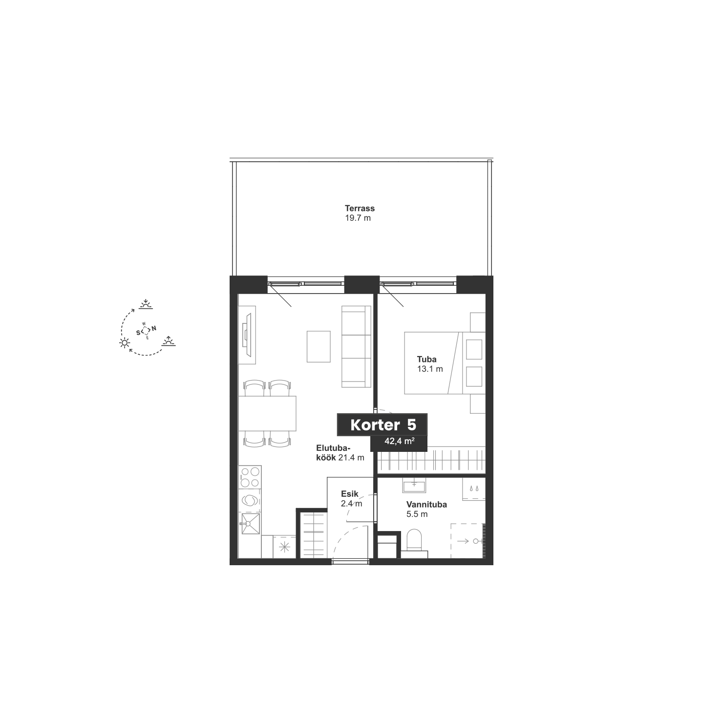 After entering into a contract under the law of obligations, the Purchaser can change the interior finishing package and, based on a separate calculation and in agreement with the developer, to modify the interior of the apartment (colours, planning) and general construction works (electrical plugs, sauna, etc.) until 15.07.2025.